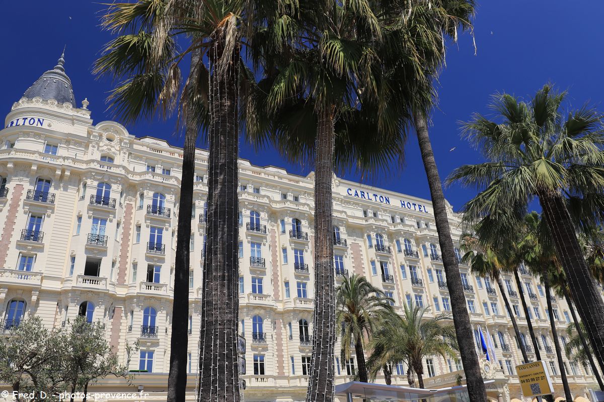 | l'hôtel Intercontinental Carlton, prestigieux palace de 1912 sur la Croisette, comptant plus de 300 chambres | ||||
