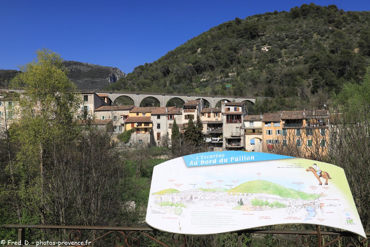 L'Escarène est un village de l'arrière pays Niçois, situé entre le col de Nice et le col de Braus, à 370 mètres d'altitude. Au confluent de 2 torrents formant le Paillon de l'Escarène, le village de l'Escarène permet d'accéder à la route du col de Turini et au village médiéval de