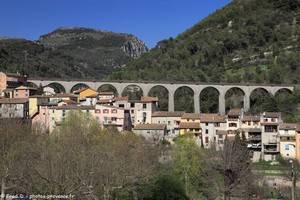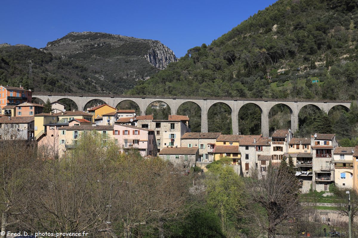 Vous remarquerez également un imposant viaduc de 11 arches avec une hauteur atteignant 40 mètres, inauguré en 1928, permettant le circulation du "train de la vallée des Merveilles", qui relie
