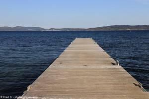 La Madrague, à l'ouest du bout de la presqu'île de Giens, est un lieu de départ pour une belle balade en boucle, sans difficultés, le long du littoral. Accostés dans le golfe de Giens, des bateaux typiques se reflètent dans le bleu de la Méditerranée.