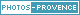 | Bannière 145x30 | Code html à copier-coller : <a href="https://www.photos-provence.fr/" target="_blank" title="Provence Mer Montagne PACA"><img src="https://www.photos-provence.fr/img/logo145.jpg" alt="https://www.photos-provence.fr - Photos : Provence Mer Montagne" border="0" height="30" width="145" /></a> |