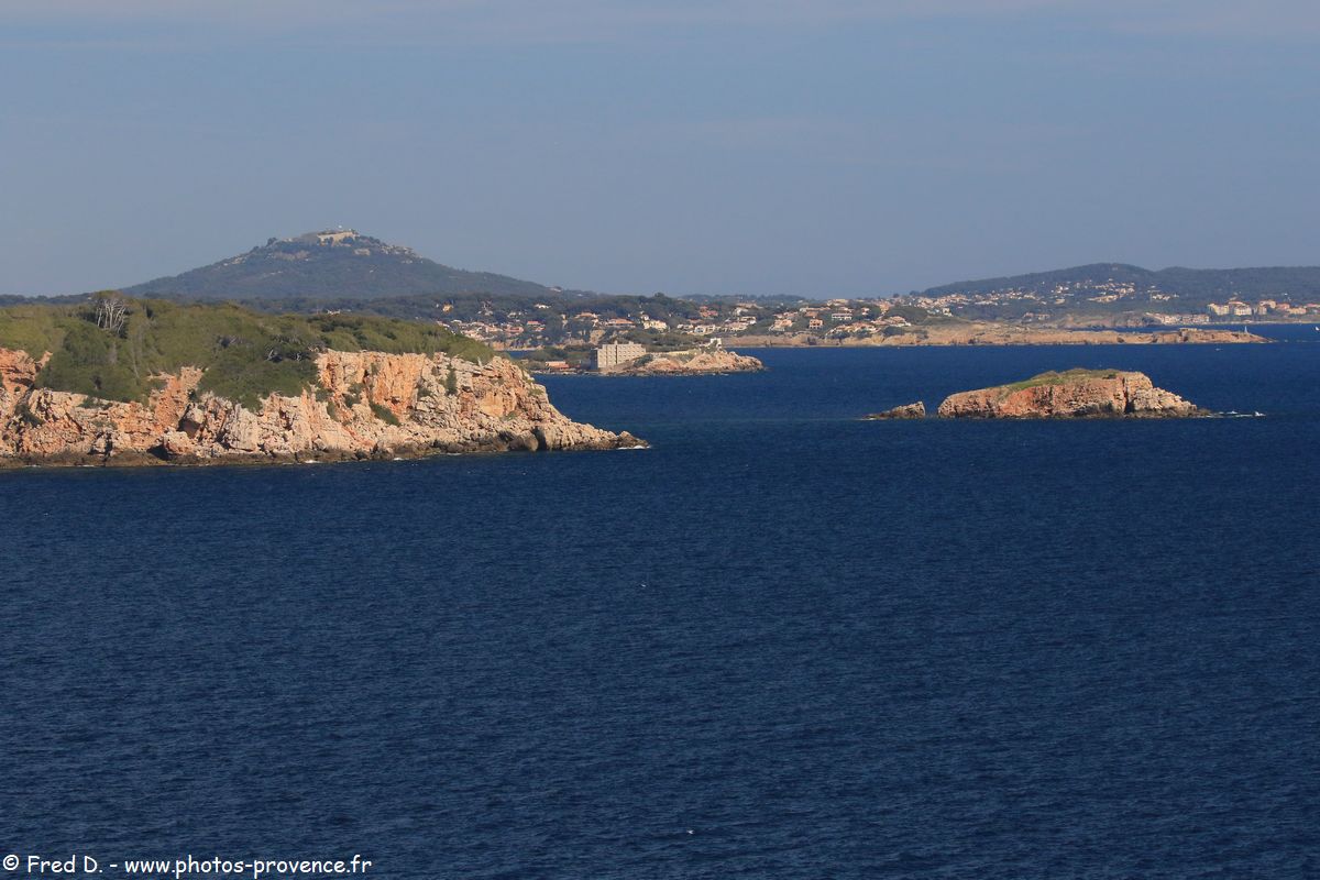 | au loin, la pointe des Engraviers, l'île Rousse et le massif du Cap Sicié | pointe des Engraviers | |||