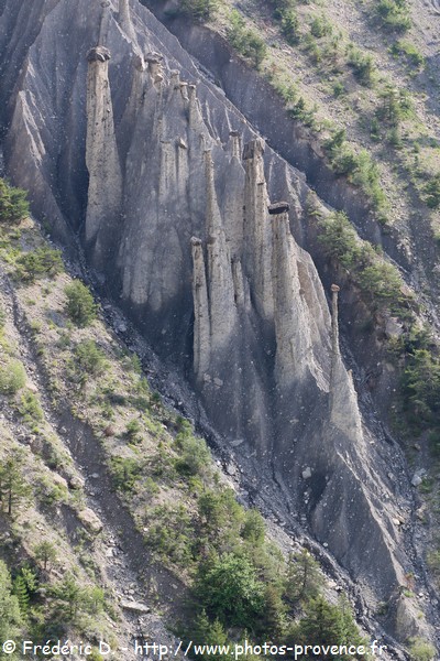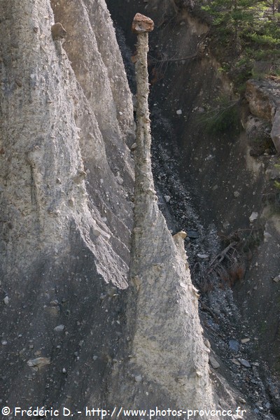 Curiosités : Châteauroux-les-Alpes possède sur son territoire des "demoiselles coiffées", cette étonnante formation géologique due à l'érosion et que l'on retrouve aussi dans les environs du lac de Serre Ponçon.