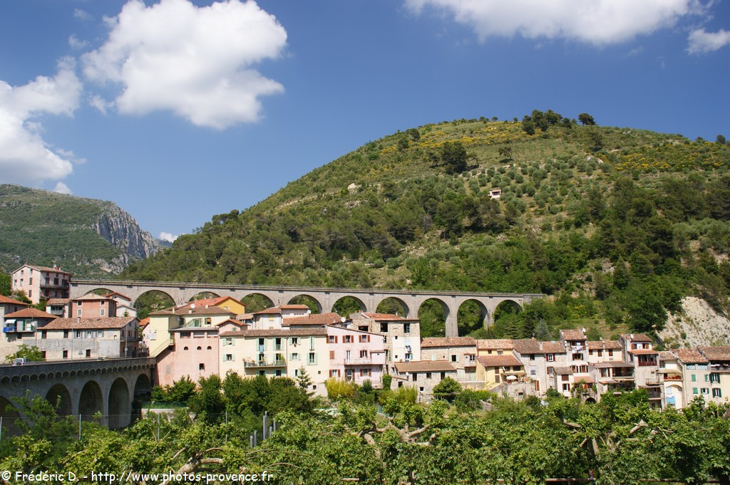 Vous remarquerez également un imposant viaduc de 11 arches avec une hauteur atteignant 40 mètres, inauguré en 1928, permettant le circulation du "train de la vallée des Merveilles", qui relie