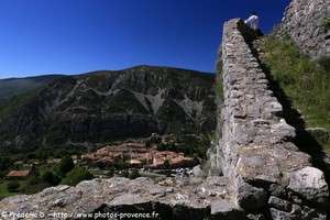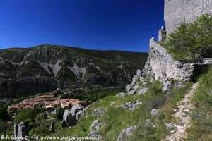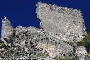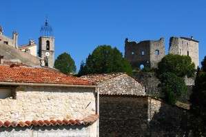 | les ruines du château de Basses Gréolières et l'église du village |