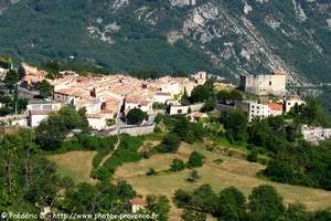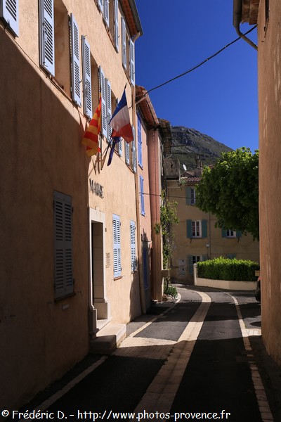 | la mairie | les ruines du château de Hautes Gréolières et l'église Saint-Etienne dominées par la montagne du Cheiron | |||