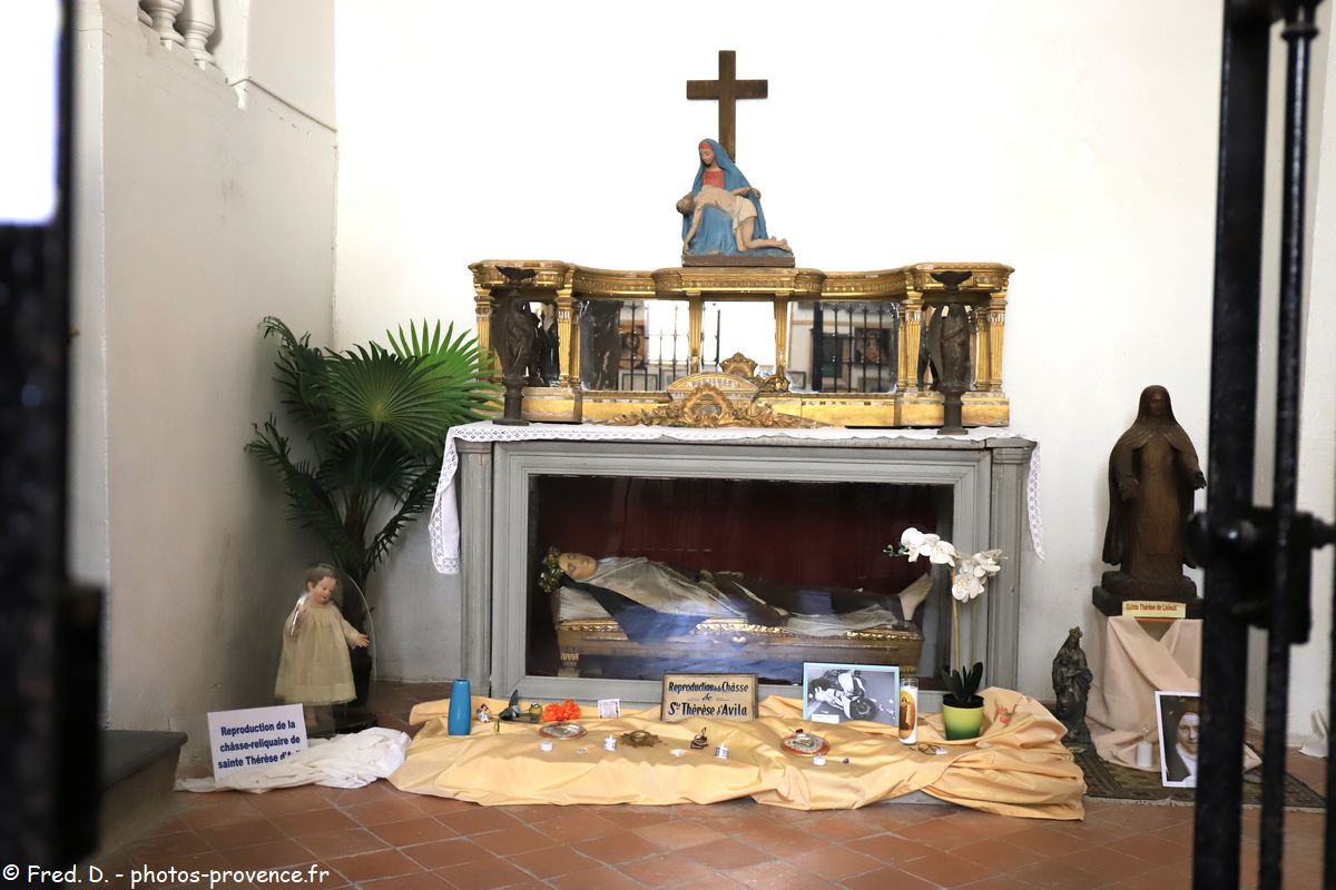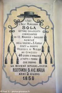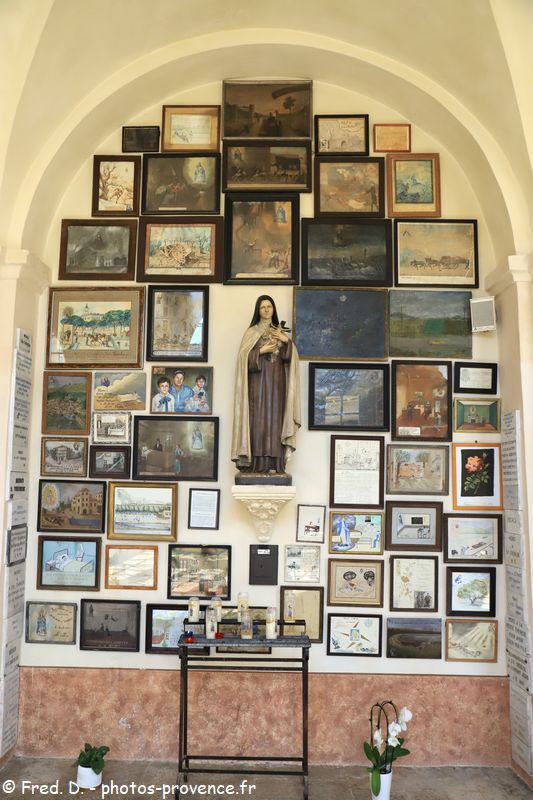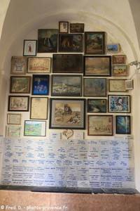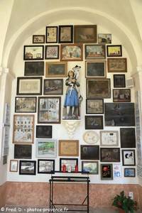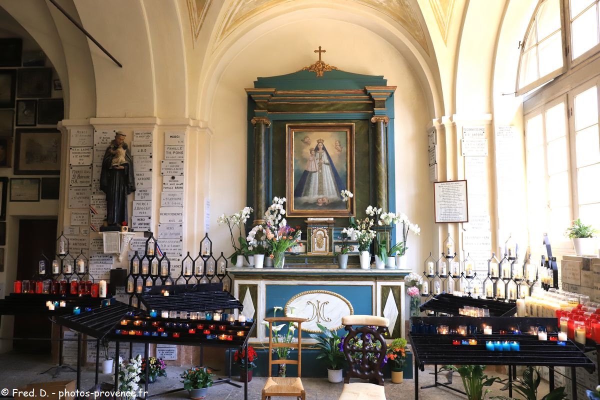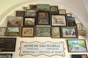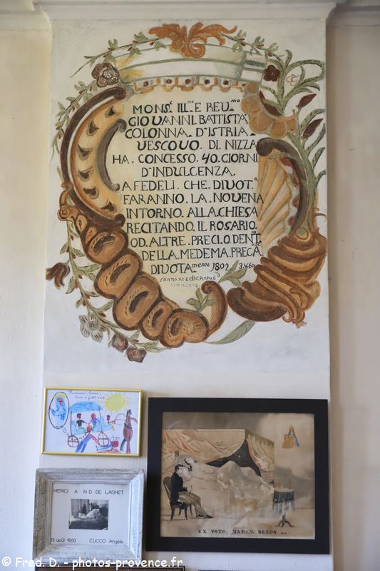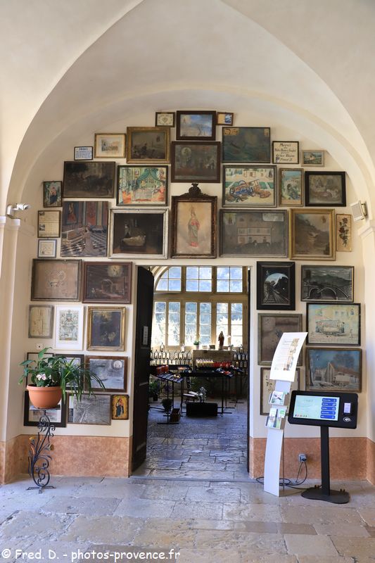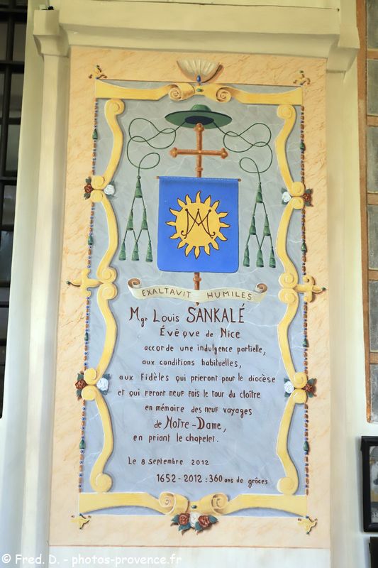 Ce sanctuaire abrite plus de 1000 ex-voto qui garnissent les murs du cloître, ce qui en fait une des plus importantes collections d'ex-voto de France. L'église de Notre-Dame-de-Laghet, de style baroque, est richement décorée.