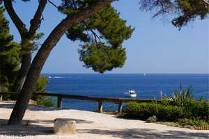 Vous pourrez ainsi découvrir la rade de Villefranche, la pointe des Sans Culottes et au loin la ville de Nice, le golfe de Saint-Hospice, la rade de Beaulieu et la mer d'Eze. Des petites plages (Passable, Les Fosses, les Fossettes, La Paloma) et une succession de petites criques avec une couleur bleu turquoise en font un lieu paradisiaque. Ce n'est sans doute pas un hasard si la commune est surnommée la presqu'île de rêve.