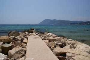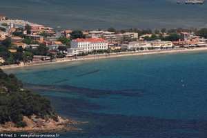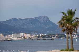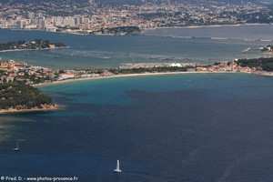 | le littoral de La Seyne-sur-Mer avec la plage du Jonquet, et au loin la presqu'ile de Saint-Mandrier, la rade de Toulon et le Coudon | ||||
