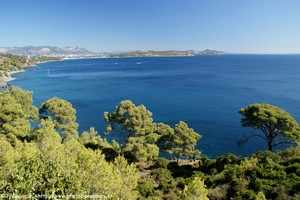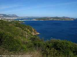 Une balade le long du littoral, jusqu'au Rocher des Deux Frères et au Cap Sicié, en passant par la plage du Jonquet, vous offrira une vue magnifique sur la presqu'ile de Saint-Mandrier, Saint-Mandrier-sur-Mer et Toulon dominé par le mont Faron et le Coudon (700 m). Au loin, vous apercevrez la presqu'ile de Giens et l'ile de Porquerolles. En partant de l'anse de Fabrégas, une marche d'environ 5 heures aller-retour (et 400 m de dénivelée) vous amènera jusqu'à la chapelle Notre-Dame du Mai et sa table d'orientation. Ne manquez pas un détour vers les magnifiques plages situées sur le parcours, dont notamment la plage du Jonquet.