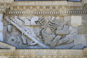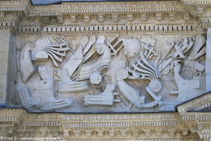 - la sculpture d'Injalbert, qui symbolise l'âme antique remettant le flambeau de l’art au génie moderne,