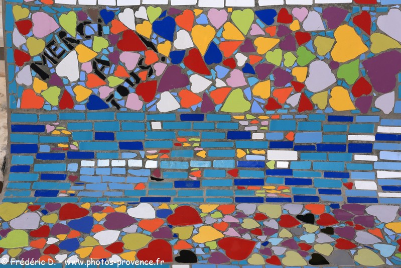 En 2016, 70 mètres de ce banc ont pris des couleurs avec la présence de mosaïques dues à Paola Cervoni, art thérapeute et fondatrice de l'association Viv'arthe.