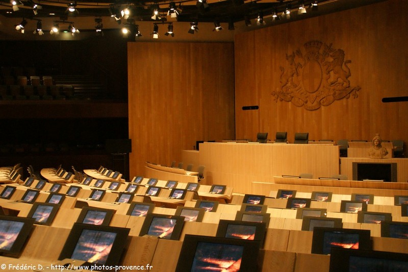 intérieur de la mairie avec le blason de Marseille "d'argent à la croix d'azur" |