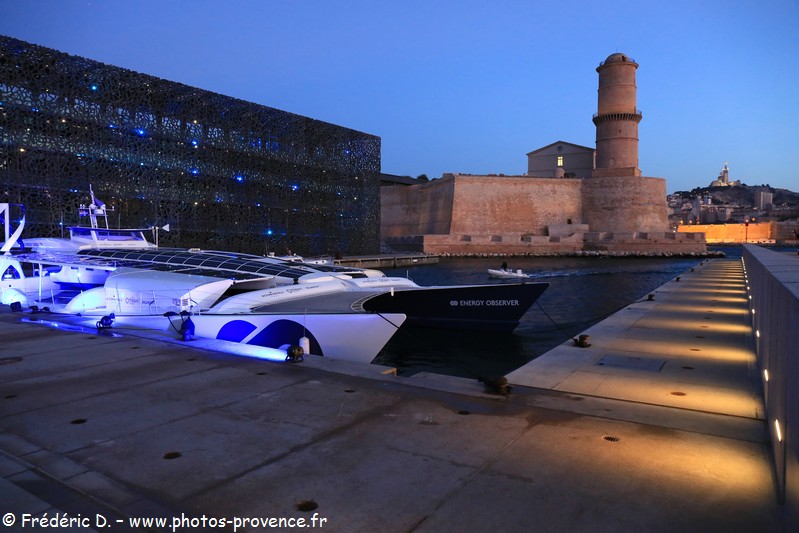 | le MuCEM, le fort Saint-Jean et la Major | la Major au-dessus du toit du MuCEM | le MuCEM la nuit | ||