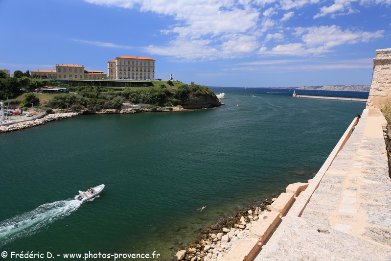 entrée du Vieux-Port encadrée par le fort Saint-Jean et le palais du Pharo |
