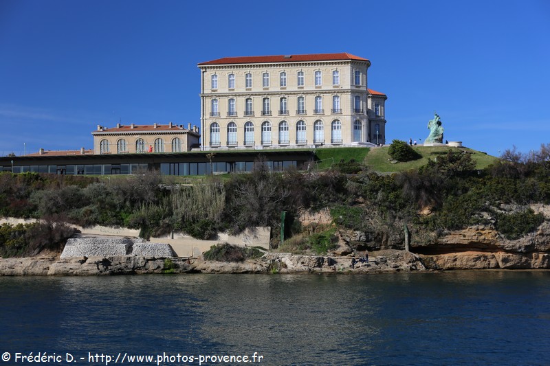 | | le Pharo vu depuis le MuCEM | le monument aux héros victimes de la mer face au port de Marseille | |