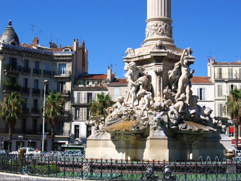 La place accueille en son centre la fontaine Cantini sculptée par André-Joseph Allar en marbre de Carrare, entre 1911 et 1913.