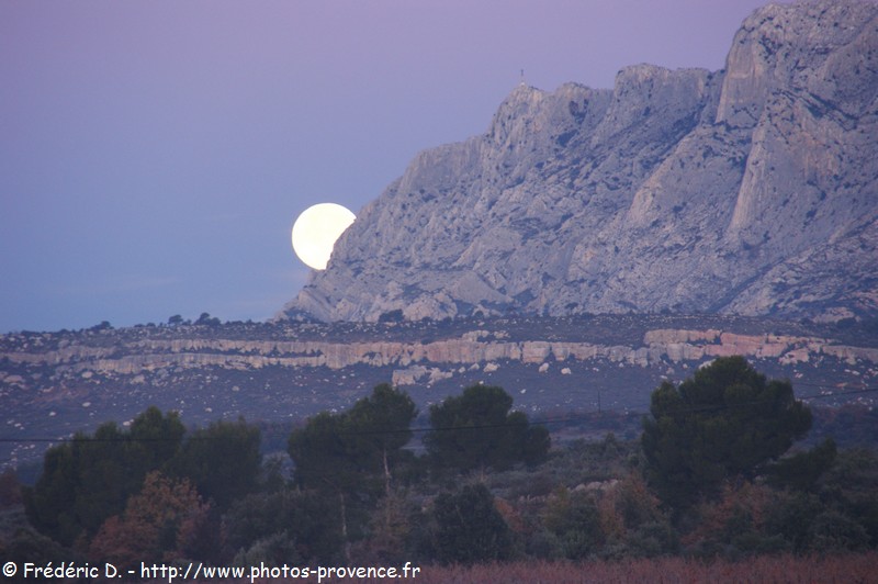 | la Sainte-Victoire vue depuis les environs du village de Pourrières | Sainte-Victoire et village de Puyloubier | la lune qui disparaît derrière la Sainte-Victoire |