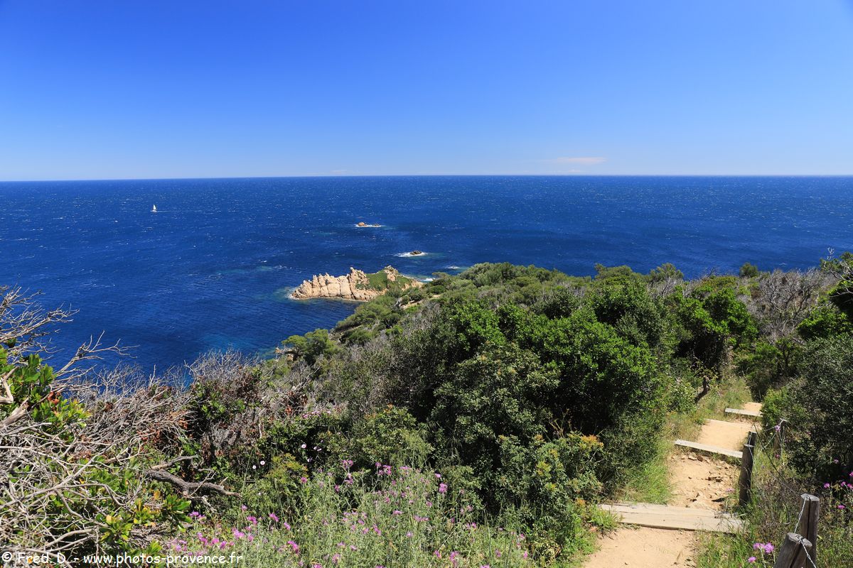 Depuis le phare, une courte marche vous permettra de descendre jusqu'au Cap Camarat, oû flotte le Rocher des Portes encore appelé l'île aux Oiseaux.