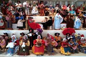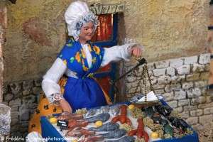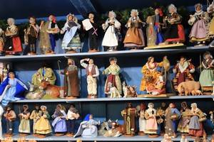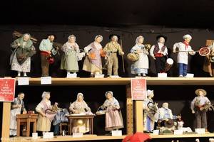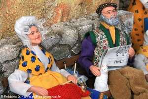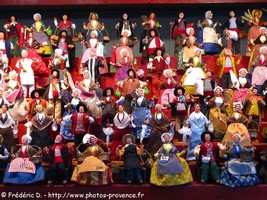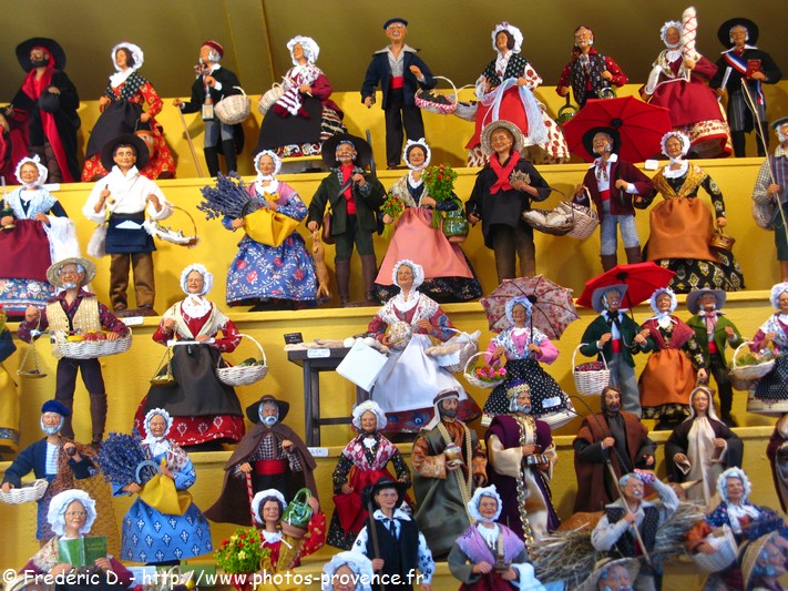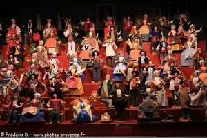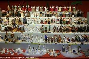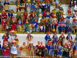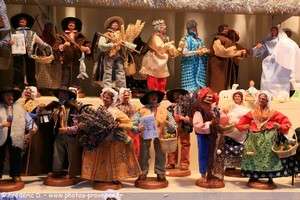 | la confrérie nationale des métiers de l'art santonnier dans le couvent de Saint-Maximin-la-Sainte-Baume, au son des tambourins et groupe folklorique provençal, en marche vers la bénédiction des santons. | |||